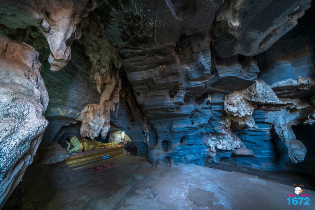 ถ้ำสีฟ้าตั้งอยู่ในพื้นที่ดูแลของสำนักสงฆ์พุทธคยา ถ้ำสีฟ้า เป็นถ้ำภูเขาหินปูนขนาดเล็กที่ถูกกัดกร่อนตามธรรมชาติ มีแร่แคลไซต์เป็นส่วนประกอบสำคัญ ไฮไลท์ที่เด่น ๆ คือ เนื้อผนังของถ้ำจะมีสีฟ้าอมเทาสลับสีขาวเป็นลวดลาย ซึ่งแตกต่างจากถ้ำอื่น ๆ และยังเป็นชื่อที่มาของถ้ำแห่งนี้อีกด้วย