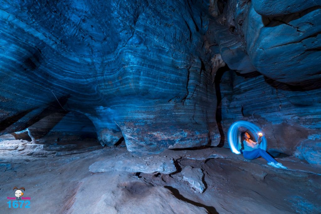 หากมองดี ๆ จะเห็นว่าผนังถ้ำเป็นสีเทา เนื่องจากเป็นเนื้อหินปูน แต่เมื่อส่องไฟเข้าไปภายในถ้ำจะพบว่าทั่วทั้งถ้ำเปล่งประกายออกมาเป็นสีฟ้า หากใครมีเทคนิคการถ่ายรูปปัง ๆ สามารถถ่ายรูปออกมาสวยแทบทุกมุมเลยล่ะ ที่นี่สามารถมาเที่ยวได้ตลอดทั้งปีและไม่เสียค่าเข้าชม
