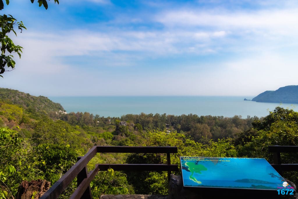 ไม่เพียงแค่ความงดงามภายในถ้ำ แต่บริเวณโดยรอบก็ยังมีความร่มรื่นและความอุดมสมบูรณ์มาก ระหว่างทางเดินบนเขา จะมีจุดให้แวะพักคลายเหนื่อย แถมยังเป็นจุดชมวิวมุมกว้าง สามารถมองเห็นวิวเขาและหาดแหลมศาลาจากมุมสูงได้สวยงามมาก