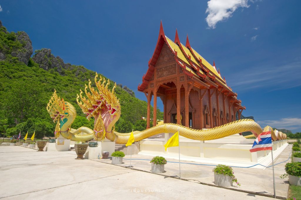 ตั้งอยู่ทางตอนเหนือของอ่าวน้อย เอกลักษณ์โดดเด่นของวัดคือ พระอุโบสถไม้สักทองสลักลวดลายไทยทั้งหลัง และมีรูปปั้นพญานาคคู่เลื้อยโอบล้อมกำแพงแก้วรอบพระอุโบสถไว้