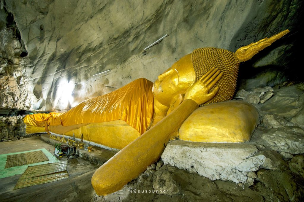 บนเขาจะพบโถงถ้ำ ซึ่งภายในประดิษฐานพระพุทธไสยาสน์องค์ใหญ่ให้พุทธศาสนิกชนได้สักการะ