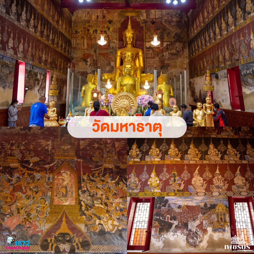 เริ่มต้นชมวัดแรกที่วัดมหาธาตุวรวิหาร ภาพที่เห็นเด่นชัดถือได้ว่าเป็นสัญลักษณ์ของวัดนี้ คือ พระปรางค์ 5 ยอดสีขาว มีอายุราว 1,000 กว่าปี ภายในบรรจุพระบรมสารีริกธาตุ