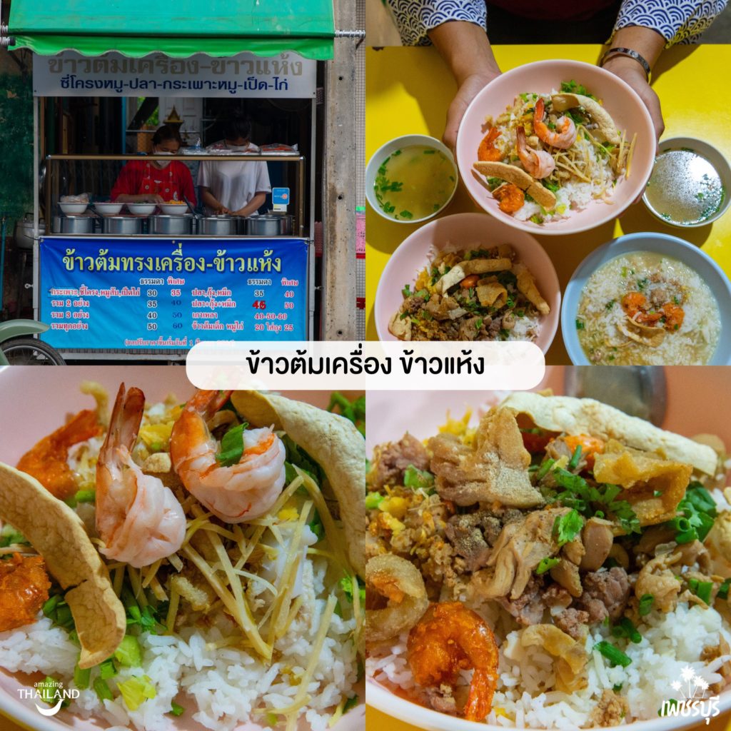 ร้านข้าวต้มในดวงใจเลย อร่อยมาก ไม่ได้เว่อนะ ทางร้านมีทั้งข้าวต้มทรงเครื่องเเละข้าวต้มแห้ง ที่เสิร์ฟพร้อมน้ำซุปร้อน ๆ ท็อปปิ้งก็มีให้เลือกหลากหลายมาก ทั้งหมู หมึก กุ้ง ปลา ไก่ คือดี ใครมาเที่ยวเพชรต้องเเวะมาให้ได้เลยนะ ร้านเปิดเวลา 06.00-09.00 และ 16.00-21.00 น.