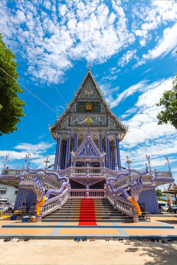 เพื่อความแข็งแรงของโบสถ์จึงมีการใช้เซรามิกที่มีความมันเงา แข็งแรง มาเคลือบปูน โดยใช้สีเพียงสองสีคือ สีน้ำเงินและสีขาว ภายในโบสถ์ประดิษฐานพระพุทธชินราชองค์จำลอง เพื่อน ๆ สามารถมาขอพร สักการบูชากันได้ที่นี่