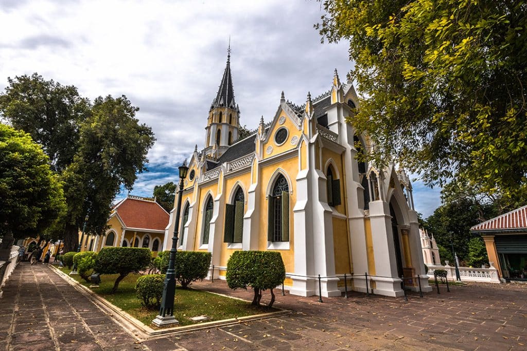 วัดนิเวศธรรมประวัติราชวรวิหาร ตั้งอยู่บนเกาะลอย เกาะกลางแม่น้ำเจ้าพระยา เป็นวัดที่ในหลวงรัชกาลที่ 5 โปรดฯ ให้สร้างขึ้น เพื่อทรงใช้เป็นสถานที่สำหรับบำเพ็ญพระราชกุศล เมื่อครั้งเสด็จฯ แปรพระราชฐานมาประทับที่พระราชวังบางปะอิน โดยมีรูปแบบสถาปัตยกรรมแบบโกธิก เลียนแบบโบสถ์ของศาสนาคริสต์