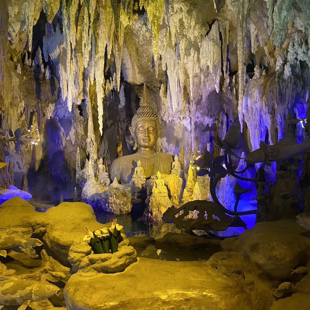 ปัจจุบัน วัดร่องขุ่นเปิดจุดเช็กอินแห่งใหม่ที่ใช้เวลาสร้างกว่า 6 ปี นั่นก็คือ “ถ้ำศิลป์วัดร่องขุ่น” เป็นผลงานประติมากรรมของอาจารย์เฉลิมชัย ภายในถ้ำ มีรูปทรงหินงอกหินย้อย พระพุทธรูปทุกขภูมิ ขุมนรกและประตูพระนิพพาน มีเพลงบรรเลงประกอบแสงสีเสียงตลอดเส้นทาง โดยมีค่าเข้าชม 50 บาท/คน มีเวลาประมาณ 10-15 นาที ต่อรอบ