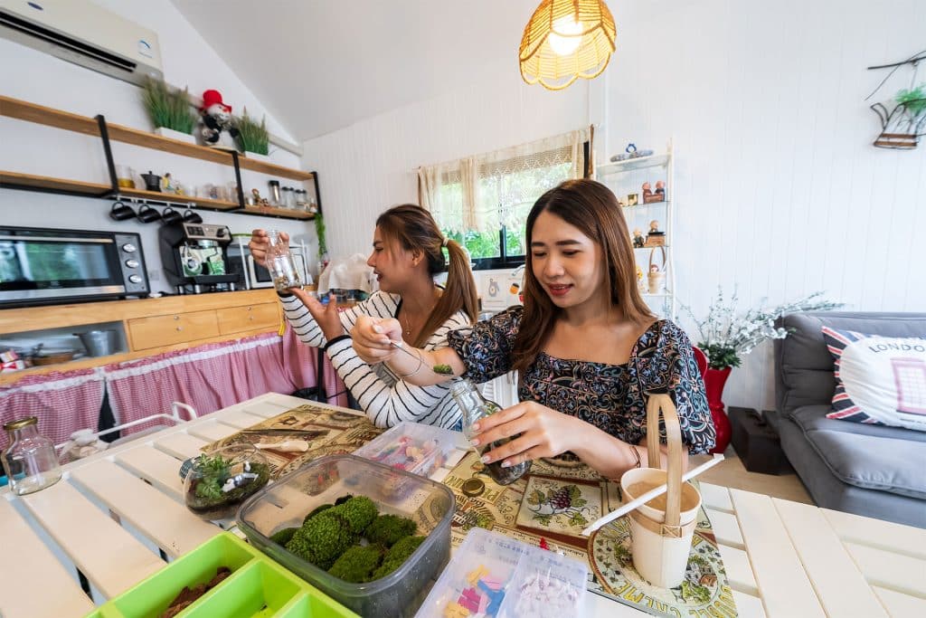 กิจกรรมจัดสวนในขวด (Terrarium) เป็นการจำลองระบบนิเวศออกมาเป็นสวนในขวดตามจินตนาการ สามารถนำขวดน้ำช่อดอกมะพร้าวที่ดื่มหมดแล้วนำกลับมาใช้ใหม่ในกิจกรรมนี้ได้อีกด้วย
