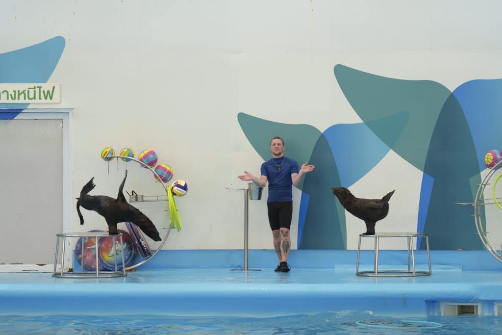 ในโชว์มีทั้งโลมาและแมวน้ำแสนรู้ มาร่วมแสดง ที่ทั้งกระโดด เล่นบอล เต้นตามจังหวะเพลง เป็นการแสดงที่ทำให้บัดดี้หัวเราะและตื่นเต้นตลอดเวลา นอกจากนี้ยังมีช่วงที่เล่นกับครูฝึก ที่ดูแล้วอบอุ่นใจมาก เหมือนเห็นความผูกพันจริง ๆ ระหว่างคนกับสัตว์ หลังโชว์จบ เพื่อน ๆ สามารถถ่ายรูปกับโลมาได้แบบใกล้ชิดสุด ๆ