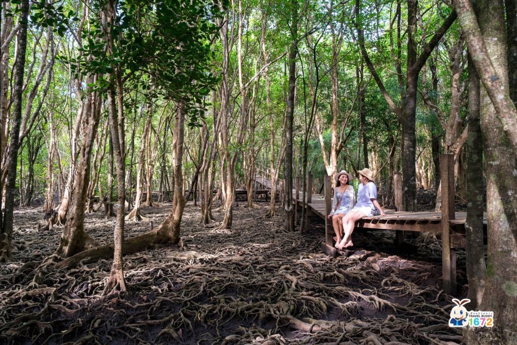 ก่อนจะไปถึงลานตะบูน เราต้องนั่งเรือผ่านป่าถึง 3 ป่า นั่นคือ ป่าโกงกาง ป่าจาก และป่าตะบูน บางจุดที่เรือผ่านเราจะเห็นต้นไม้โค้งหากันลักษณะเหมือนอุโมงค์ต้นไม้ บรรยากาศดีมาก ๆ เลยค่ะ