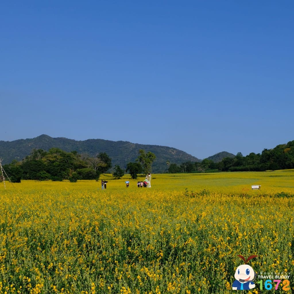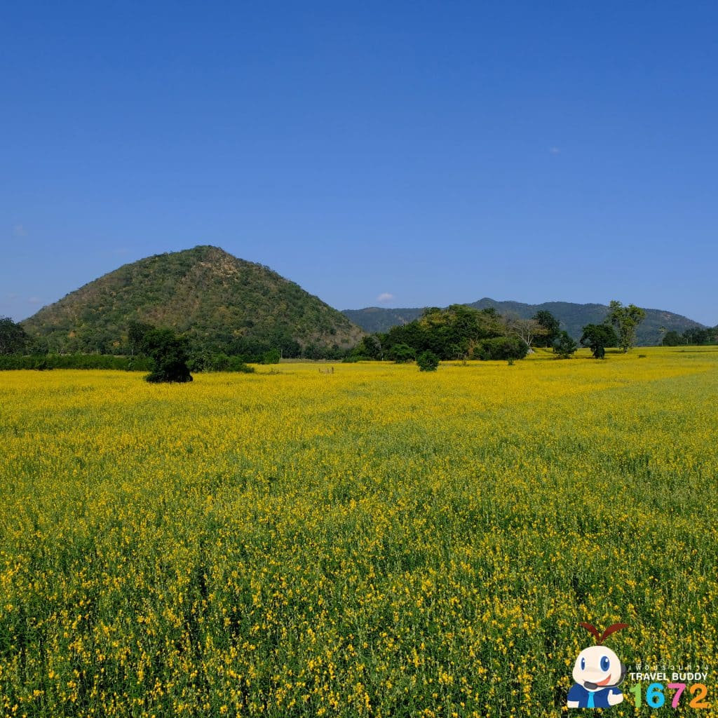 ทุ่งดอกไม้สวยของ จ.นครสวรรค์ ที่เต็มไปด้วยปอเทืองสีเหลืองเต็มทุ่งตัดกับแนวภูเขาสีเขียว ที่จะบานในช่วงกลางเดือนพฤศจิกายน-ธันวาคม มีจุดถ่ายรูปที่ห้ามพลาดคือบันไดลอยฟ้า ซุ้มถ่ายภาพ ระเบียงชมวิวบริเวณกลางทุ่ง