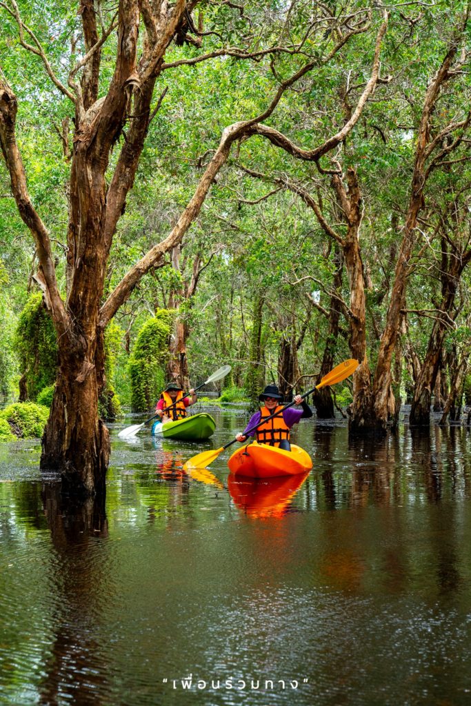 กิจกรรมไฮไลต์ของที่นี่คือ นั่งเรือชมวิว หรือพายเรือคายัคชมป่าเสม็ดพันปี เชื่อว่าเพื่อน ๆ ต้องรู้สึกตะลึงไปกับวิวต้นเสม็ดขาวเก่าแก่โบราณที่ยืนต้นสูงอยู่กลางน้ำเหล่านี้แน่ ๆ