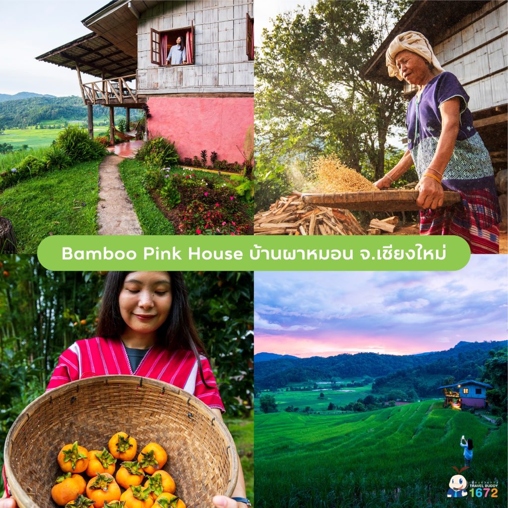 📌 Bamboo Pink House บ้านผาหมอน จ.เชียงใหม่ – ขึ้นดอยชมนาขั้นบันไดสีเขียว เต็มไปด้วยความงามของต้นกล้า เรียนรู้วิถีชาวบ้าน แนะนำให้นอนโฮมสเตย์บนดอย เปิดหน้าต่างรับแสงอาทิตย์หลังเขาสุดโรแมนติก