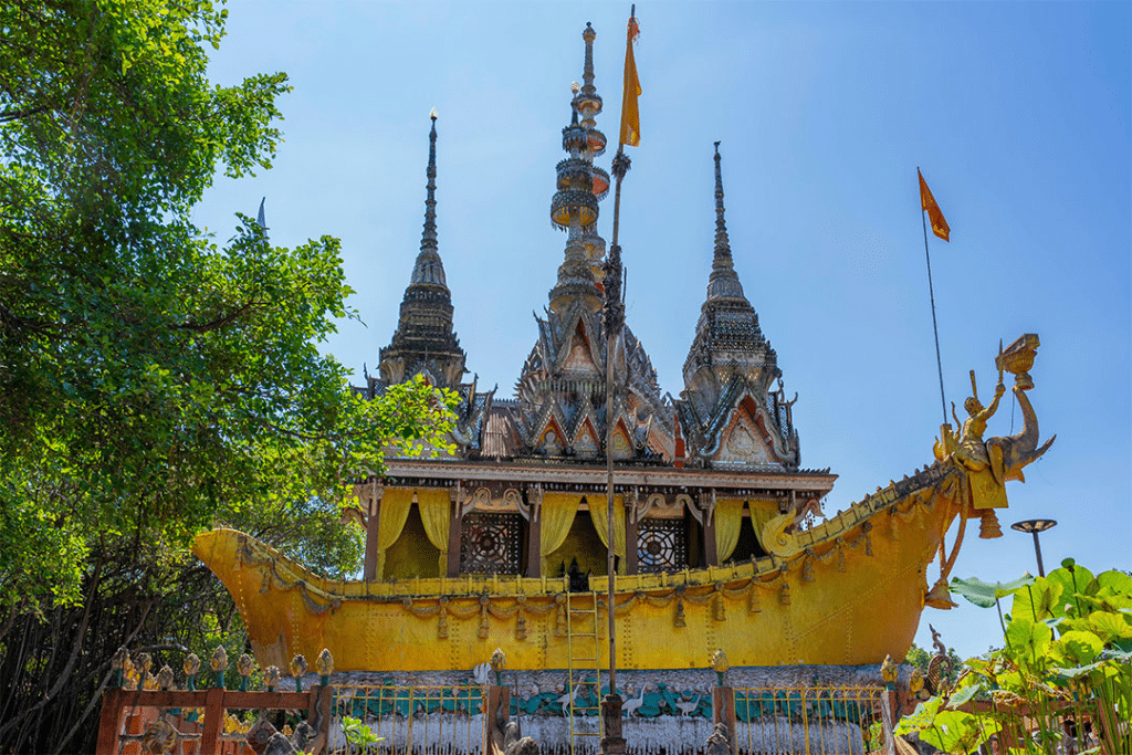 - ศาลาพุทธอนาถาวนาราม ศาลาสีทอง สามารถมากราบไหว้ขอพรพระพุทธรูปที่ประดิษฐานภายในได้