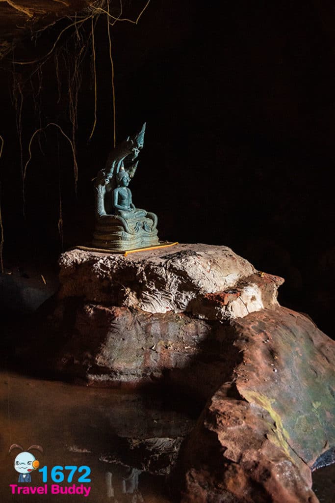 หลังจากเดินมาสักระยะ เพื่อน ๆ จะพบกับหินที่มีรูปทรงคล้ายพญานาคกำลังแผ่พังพานอยู่ เป็นจุดที่นักท่องเที่ยวนิยมแวะถ่ายรูป รวมไปถึงไหว้ขอพรอีกด้วย