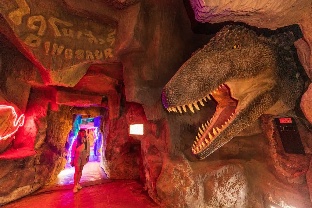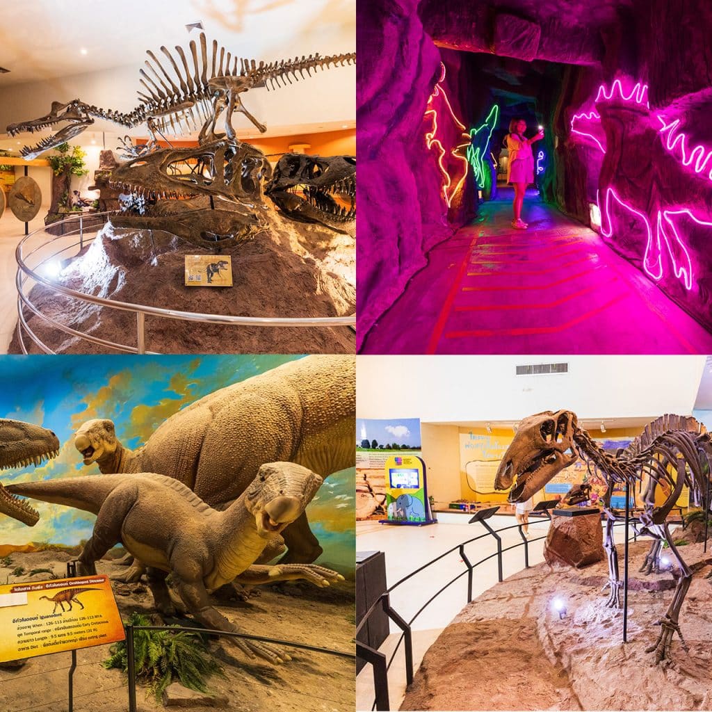 หากเดินเข้าไปเรื่อย ๆ ภายในมีทั้งฟอสซิล ไดโนเสาร์จำลองเท่าขนาดจริงพันธุ์ต่าง ๆ ทั้งในประเทศไทยและต่างประเทศ และได้สัมผัสความตื่นเต้นของการเคลื่อนไหว เสียงขู่คำรามของไดโนเสาร์ด้วย