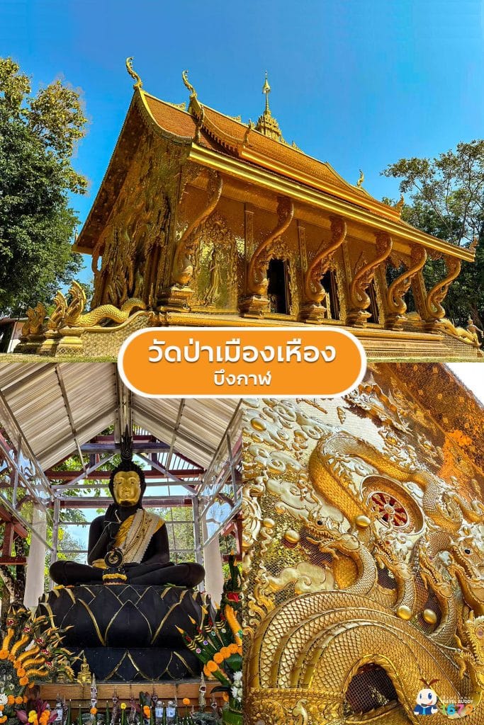 ภายในอำเภอเมืองฯ ยังมีวัดอีกแห่งที่แอดอยากให้เพื่อน ๆ จดไว้ในลิสต์ นั่นก็คือ “วัดป่าเมืองเหือง” หรืออีกชื่อคือ วัดศรีบุญเรือง วัดที่ได้รับการขนานนามว่าเป็นเมืองนาคานคร และยังค้นพบประวัติที่มีการบันทึกไว้ว่า วัดนี้เป็นวัดโบราณ สร้างขึ้นในยุคที่ขอมเรืองอำนาจ มีการค้นพบซากปรักหักพังของสิ่งก่อสร้างเดิมอยู่บ้าง แต่สิ่งที่โดดเด่นเมื่อเข้ามายังวัดแห่งนี้คืออุโบสถสีทองอร่ามทั้งหลัง อีกทั้งลวดลายและประติมากรรมต่าง ๆ ภายในวัด มีความงดงามอย่างมาก