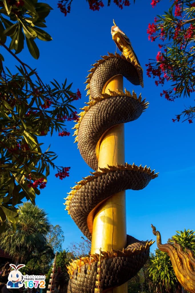 จุดสุดท้ายคือ “พญาศรีมุกดามหามุนีนีลปาลนาคราช” หรือ พญานาคฟ้า (สวรรค์พิภพ) ถือเป็นรูปปั้นพญานาคที่ใหญ่ที่สุดในประเทศไทย สีเขียวอมฟ้าหันหน้าไปทางแม่น้ำโขง ตั้งอยู่บนภูเขาสูงในพื้นที่ของวัดรอยพระพุทธบาทภูมโนรมย์ ตำบลนาสีนวน อำเภอเมือง รูปปั้นองค์พญานาคนี้มีลักษณะเหมือนกำลังเลื้อย ทำให้เกิดช่องคล้ายซุ้มประตู ผู้ที่สักการะจะลอดท้องพญานาคให้ครบ 7 ซุ้มเพื่อความเป็นสิริมงคล