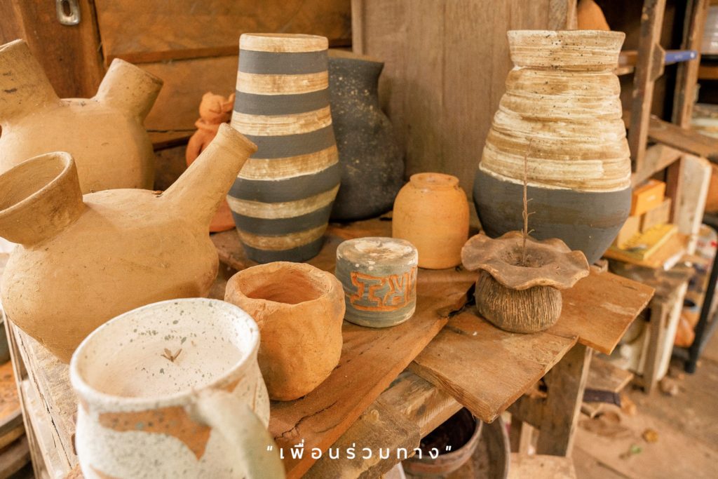 พอดิน Clay Studio แฝงตัวอยู่กับ Skipper Garden ใช้พื้นที่กลางสวนเป็นห้องเรียนเปิดโล่ง พร้อมแวะเวียนไปเยี่ยมเยียนตามงานเทศกาลต่าง ๆ เพื่อกระจายโอกาสให้ผู้คนหลากหลายได้เข้ามาสัมผัสงานฝีมือแขนงนี้ แทนที่จะอยู่นิ่งอยู่กับที่ ขอบอกเลยว่าไม่จำเป็นพื้นฐานมาก่อนก็ร่วมสนุกไปด้วยกันได้นะ