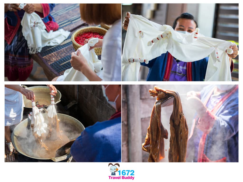 ส่วนกิจกรรมในชุมชนก็น่าสนใจไม่น้อยค่ะ เพราะเราจะได้ทำผ้ามัดย้อม ออกแบบลวดลายกันได้เองเลยนะ โดยจะใช้สีย้อมจากดอกบัวและดาวเรืองนั่นเองค่ะ