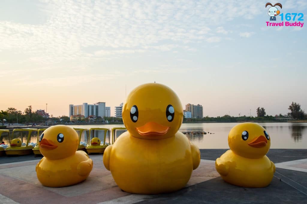 ที่นี่เป็นสวนสาธารณะใจกลางเมือง มีหลายมุมให้เราได้ถ่ายรูปสวย ๆ รวมถึงไฮไลท์ที่ไม่ว่าใครได้มาหนองประจักษ์ก็ต้องเจอ น้องเป็ดเหลืองริมบึงน้ำนั่นเอง