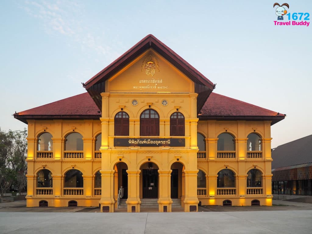 อีกหนึ่งแลนด์มาร์กที่ต้องห้ามพลาดนั่นคือ พิพิธภัณฑ์เมืองอุดรธานี อาคารสีเหลืองสวยงามเห็นมาแต่ไกล สร้างขึ้นในสมัยรัชกาลที่ 6 เดิมใช้เป็นโรงเรียนสตรี ก่อนจะปรับเปลี่ยนไปใช้เป็นสถานที่ทำการของหน่วยงานราชการต่าง ๆ จนปัจจุบันกลายเป็นพิพิธภัณฑ์ ซึ่งในการบูรณะใหญ่ครั้งล่าสุดนั้น ได้มีการเปิดผิวปูนอาคารบางส่วน และทิ้งไว้ให้ประชาชนได้เห็นรายละเอียดภายในเพื่อเป็นประโยชน์ด้านการศึกษา