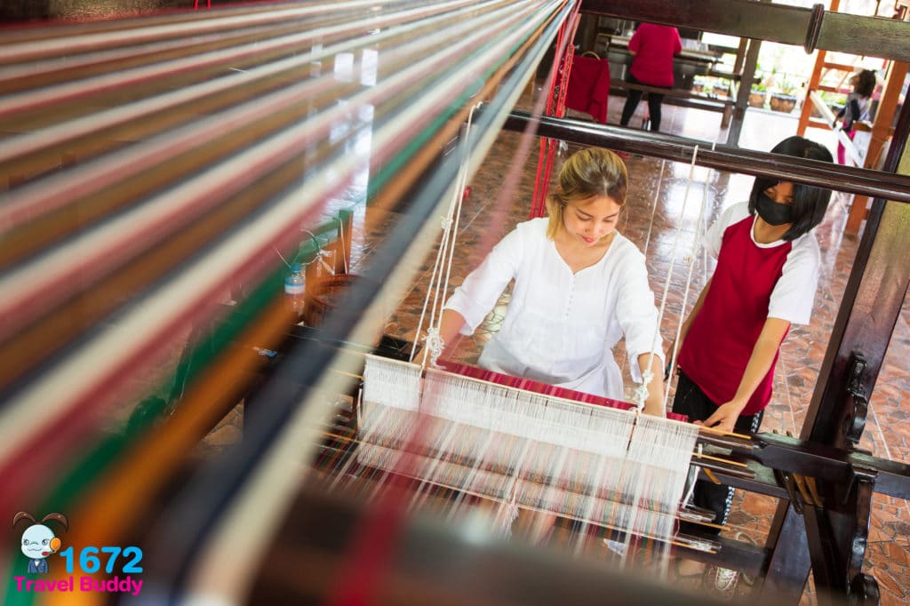 นอกจากนี้ เรายังจะได้ชมการทอผ้าทอลายขิดที่มีลวดลายสวยงามเป็นเอกลักษณ์และเป็นภูมิปัญญาท้องถิ่นของจังหวัดอุดรธานีอีกด้วย ซึ่งกรรมวิธีการทอก็จะเป็นแบบดั้งเดิมคือการใช้กี่ทอผ้าแบบโบราณ โดยไม่ใช้เครื่องจักร