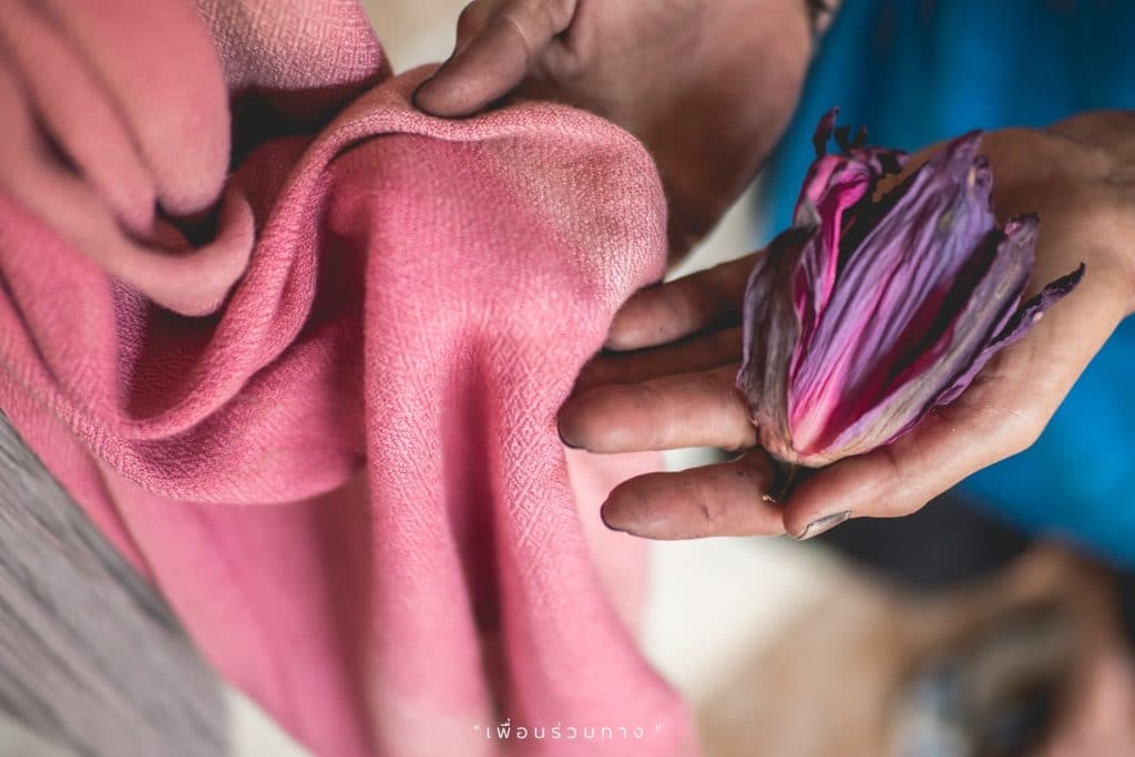 ชุมชนตำหูกที่ย้อมสีผ้าด้วยดอกบัว