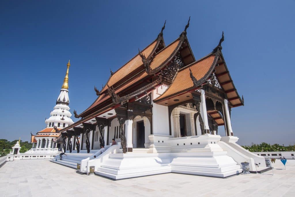อาคารหลังถัดมาคือพระวิหาร อันเป็นที่ประดิษฐานพระพุทธวิสุทธิมงคลศาสดา เจ้าฟ้าจุฬาภรณนฤมิตร องค์พระประธาน และอาคารด้านหลังสุดคือพระธาตุเจดีย์บรรจุพระสารีริกธาตุ พระอรหันตธาตุ รวมถึงพระอัฐิธาตุของหลวงตาพระมหาบัว อาคารทั้งหมดสร้างขึ้นอย่างงดงาม ผสมผสานศิลปกรรมจากหลายวัฒธรรมเข้าด้วยกันอย่างกลมกลืน ใช้โทนสีขาวสว่างเป็นหลัก