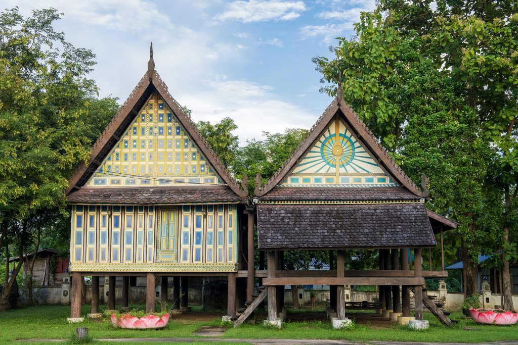 อีกอาคารที่อยู่ข้างหอแจก คือ อุโบสถ หรือ ‘สิม’ ในภาษาอีสาน