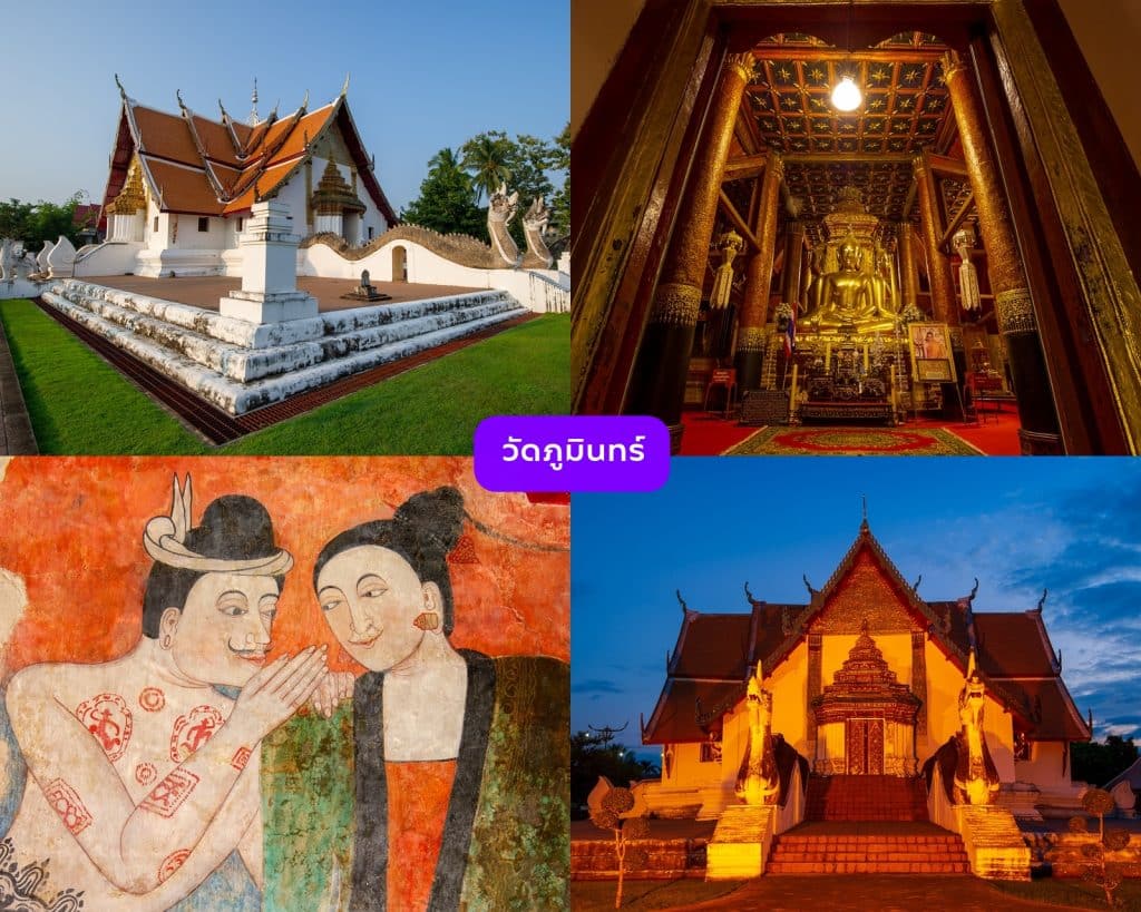 วัดภูมินทร์เป็นวัดที่สร้างทรงจัตุรมุขหนึ่งเดียวในประเทศไทย มีประติมากรรมนาคสะดุ้งตัวใหญ่ 2 ตัวเทินพระอุโบสถไว้ ตัวอาคารเป็นทั้งพระอุโบสถ พระวิหาร และพระเจดีย์ประธาน โดยใช้อาคารในแนวตะวันออก-ตะวันตกเป็นพระวิหาร และอาคารแนวเหนือ-ใต้เป็นพระอุโบสถ รัฐบาลไทยเคยพิมพ์รูปวัดภูมินทร์ในธนบัตรใบละ 1 บาท ในช่วงสงครามโลกครั้งที่ 2
