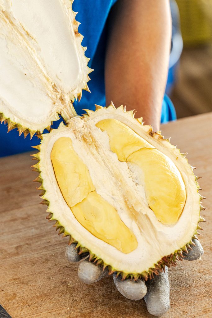 👉 ทุเรียนหลงลับแล: ลักษณะผลกลมหรือกลมรี มีกลิ่นอ่อน เนื้อมีสีเหลืองเข้ม เนื้อเหนียวละเอียด ไม่เละ รสชาติหวานมัน หอมอ่อน ๆ
