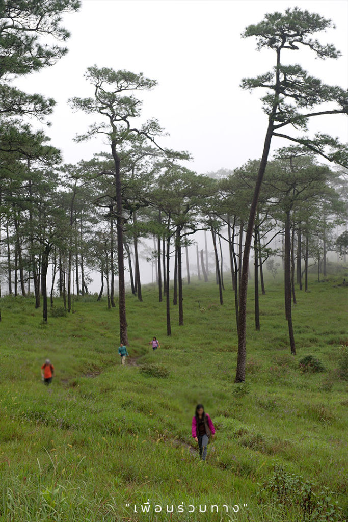 แต่หลังจากผ่านเนินมรณะแล้ว อย่าเพิ่งเฮ เพราะจะยังไม่ถึงลานสน ต้องเดินต่อไปอีกราว 500 เมตร ยังดีที่เป็นทางราบที่เดินได้ง่าย เอ้าฮึบบบ… อีกนิดเดียวจะถึงจุดกางเต็นท์แล้ว