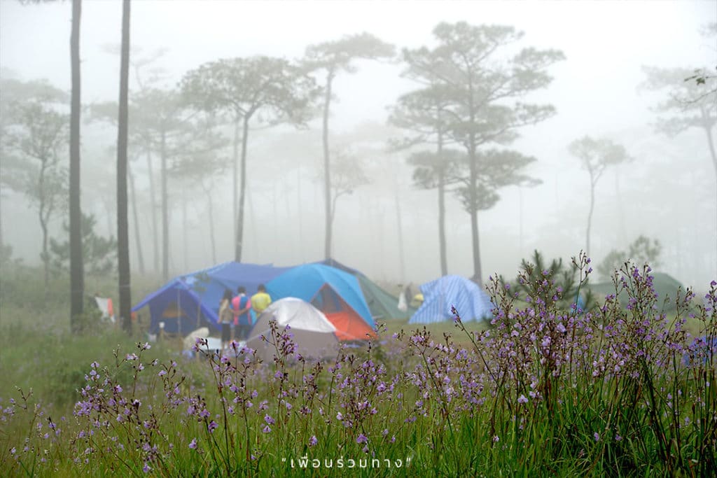 ตื่นเช้ามาหลังจากนอนพักเอาแรงจนเต็มอิ่ม คนที่มาเที่ยวช่วงเดือนพฤศจิกายน-มกราคม สามารถไปดูพระอาทิตย์ขึ้นตรง “จุดชมวิวตรงป้ายผู้พิชิตลานสนภูสอยดาว” ได้นะ ติดต่อที่เจ้าหน้าที่เพื่อให้นำทางได้เลย แต่ถ้ามาช่วงหน้าฝน ทางเจ้าหน้าที่จะไม่ให้ขึ้น เพราะทางที่ค่อนข้างชันจะมีความลื่น ส่วนตัวแอดแค่เดินเล่นแถว ๆ จุดกางเต็นท์ก็ฟินแล้ว