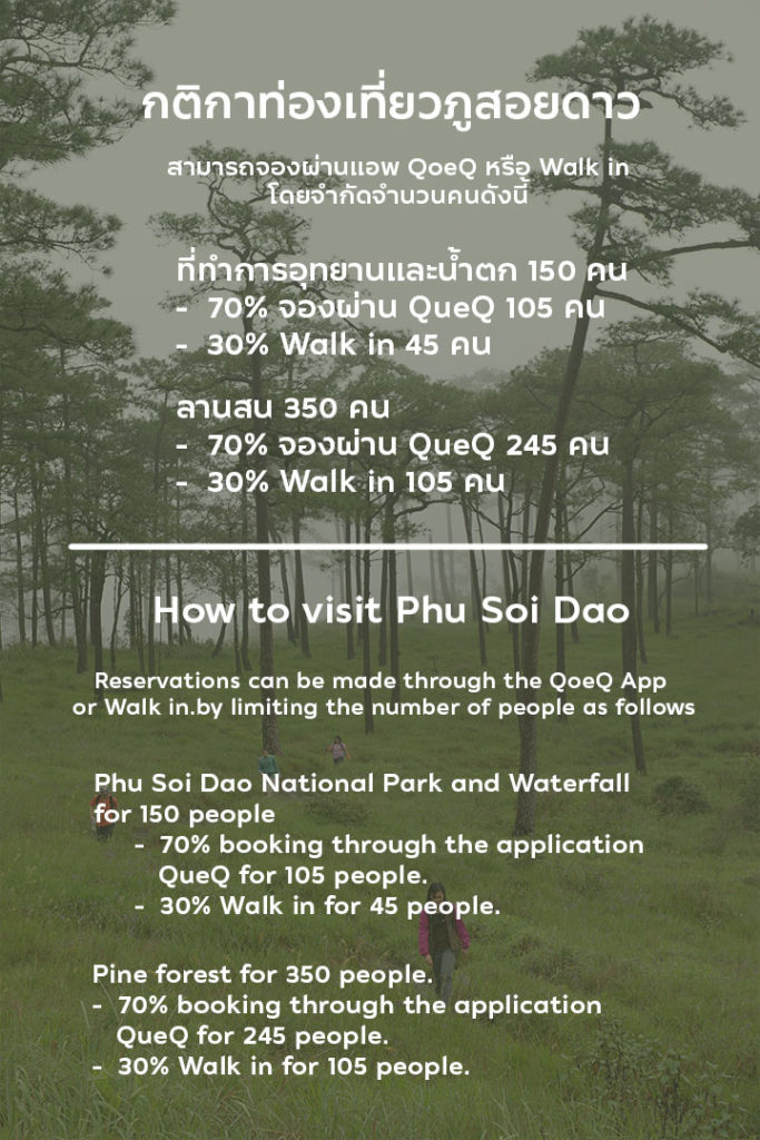 วิธีที่ 2 สามารถ Walk in เข้าไปได้ตามปกติ แต่แอดขอแจ้งไว้ก่อนว่า ทางภูสอยดาวจะรับนักท่องเที่ยวที่จองผ่านแอปพลิเคชัน 70% นักท่องเที่ยววอล์คอิน 30% โดยแบ่งเป็น