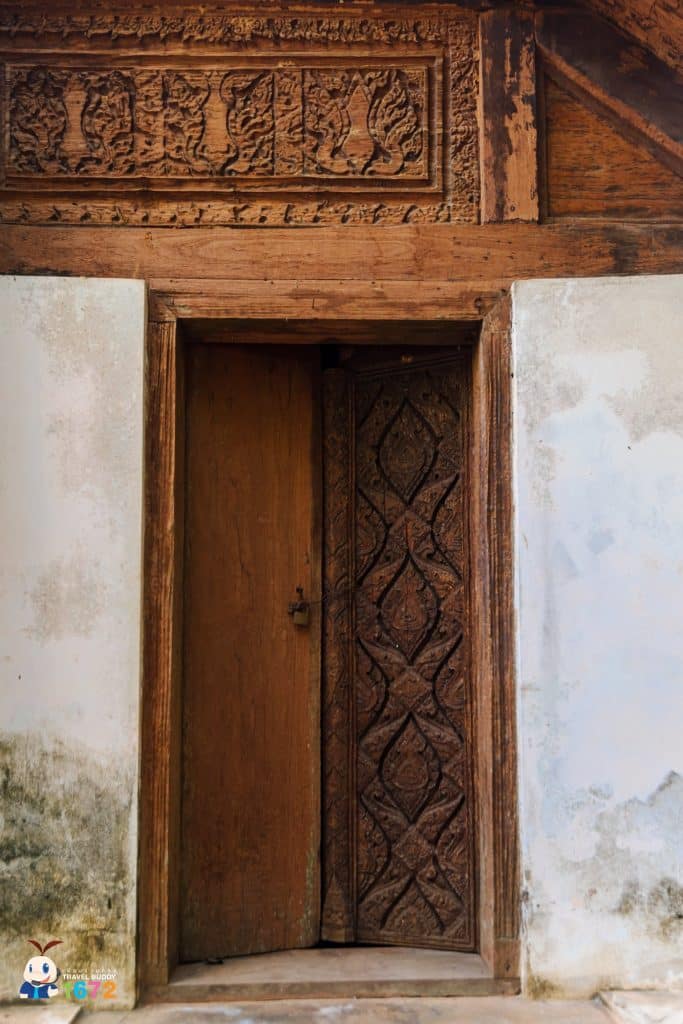 วิหารของวัดมีบานประตูเป็นคู่บานประตูไม้จำหลักโบราณ มีลวดลายสวยงาม สันนิษฐานว่าสร้างในสมัยอยุธยาตอนปลาย ตัวเสาประตูเป็นลายกนกใบเทศสลับลายกนกก้ามปู บานประตูเป็นไม้แกะสลักทั้งบาน รูปลายกนกก้านขด มีรูปสัตว์หิมพานต์แทรกอยู่ในลวดลายกนกต่าง ๆ มีความอ่อนช้อยสวยงาม โดยบานซ้ายและขวานั้นไม่เหมือนกัน แต่เมื่อปิดบานแล้วลวดลายมีความลงตัวเข้ากันได้สนิท และเป็นบานประตูมีความสวยงามมากที่สุด 1 ใน 3 คู่ของจังหวัดอุตรดิตถ์