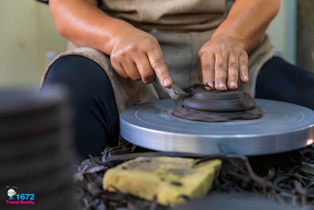 วิธีการปั้นเป็นแบบขึ้นรูปบนแป้นหมุน แล้วปั้นด้วยมือซึ่งเป็นวิธีแบบดั้งเดิมเพื่อให้ได้แบบที่ต้องการตามความชำนาญของช่างปั้น