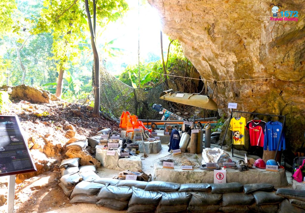 บริเวณปากถ้ำ มีการจัดแสดงสิ่งของเครื่องใช้ต่างๆ ที่ใช้ในการปฏิบัติการจริงช่วงสถานการณ์ช่วยเหลือทีมหมูป่า รวมไปจนถึงของใช้ เช่น เสื้อผ้า รองเท้า รถจักรยาน ที่ทีมหมูป่าทิ้งไว้หน้าถ้ำก่อนเข้าไปในถ้ำ