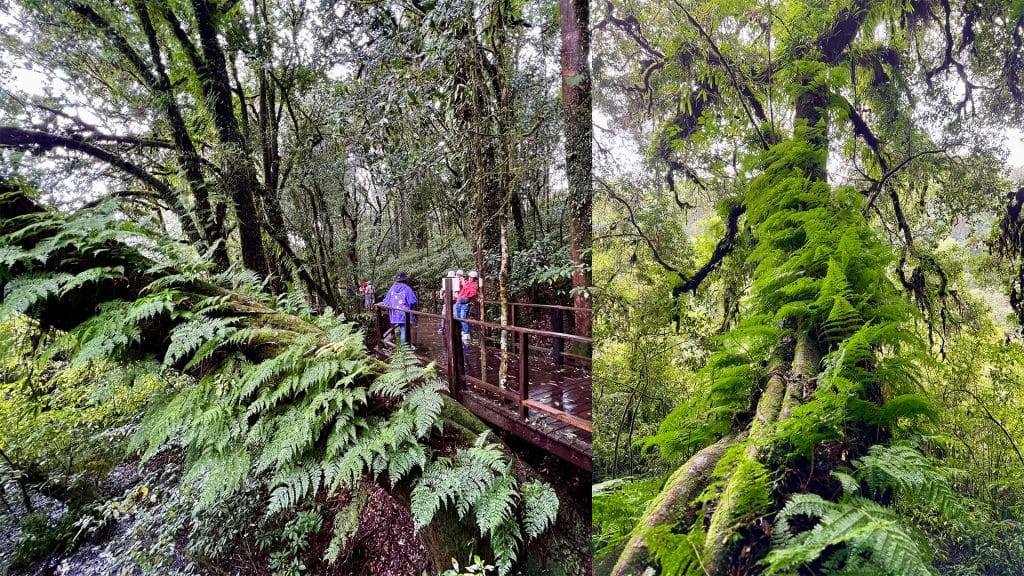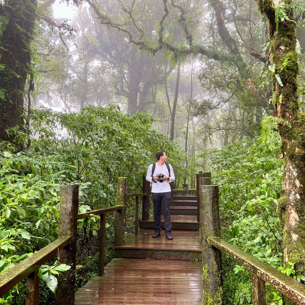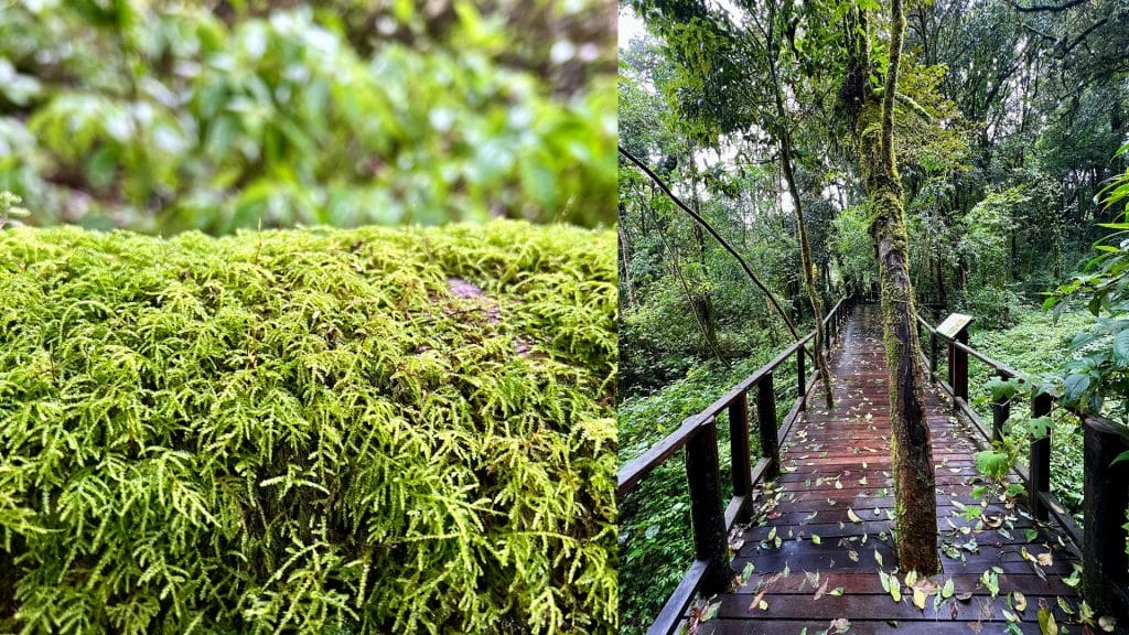 ช่วงหน้าฝน…ที่นี่จะปกคลุมไปด้วยผืนป่าสีเขียวขจี เมื่อเดินลึกเข้าไปข้างในจะมีละอองน้ำที่เกาะตามกิ่งไม้ ใบไม้ปลิวหล่นลงมากระทบร่างกายให้ความสดชื่น บางครั้งก็มีสายหมอกและลมเย็น ๆ พัดผ่าน เดินเล่นถ่ายรูปไปเพลิน ๆ หยุดเก็บภาพความประทับใจและหยุดพักฟังเสียงร้องของนกนานาชนิดที่อาศัยอยู่ท่ามกลางธรรมชาติอันสมบูรณ์ เป็นเสน่ห์ตามธรรมชาติที่เพื่อน ๆ ไม่ควรพลาดเมื่อมาเที่ยวดอยอินทนนท์ช่วง Green Season นี้
