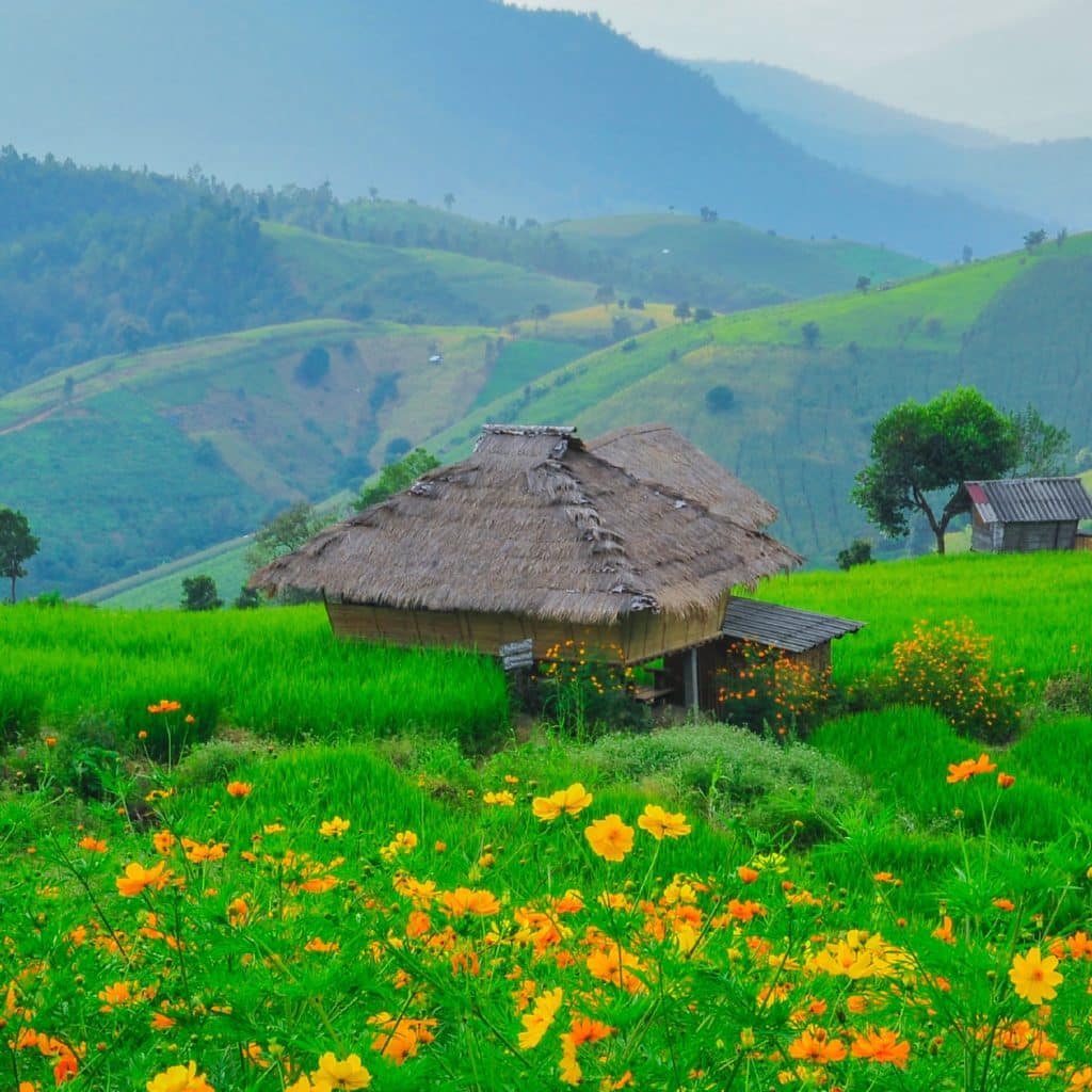 - 📆 เดือนสิงหาคม – เดือนตุลาคม : นาขั้นบันไดสีเขียวขจี ชุ่มฉ่ำไป 360 องศาในช่วงฤดูฝน