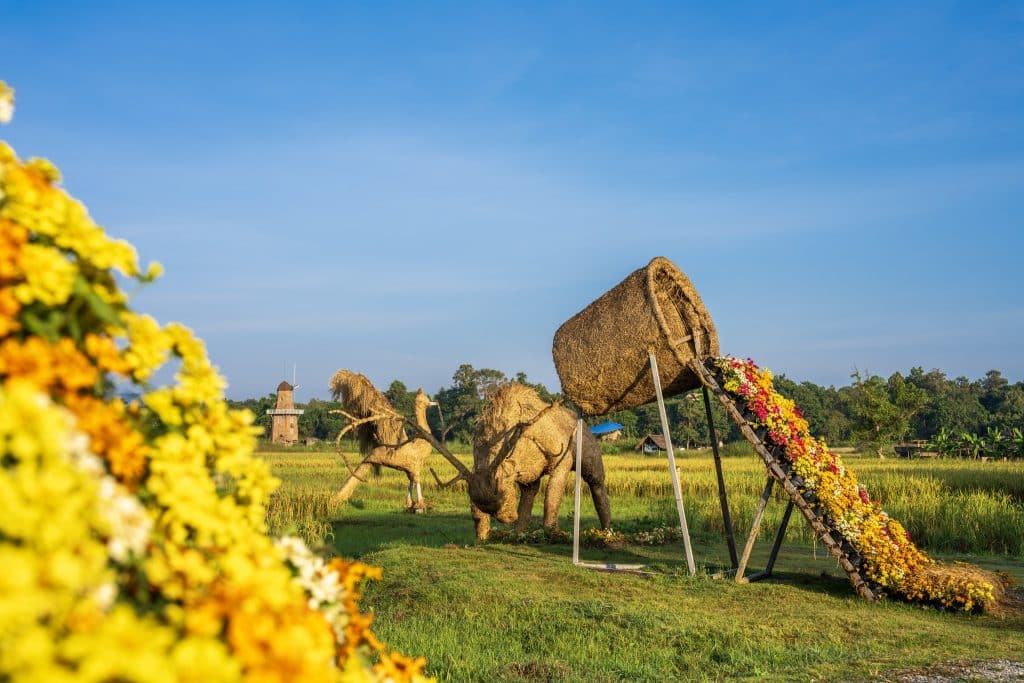 – ถ่ายรูปสวย ๆ กับเหล่าสัตว์นานาชนิดที่ทำมาจากฟาง เช่น คิงคอง สิงโต ช้าง กระทิง เป็นต้น