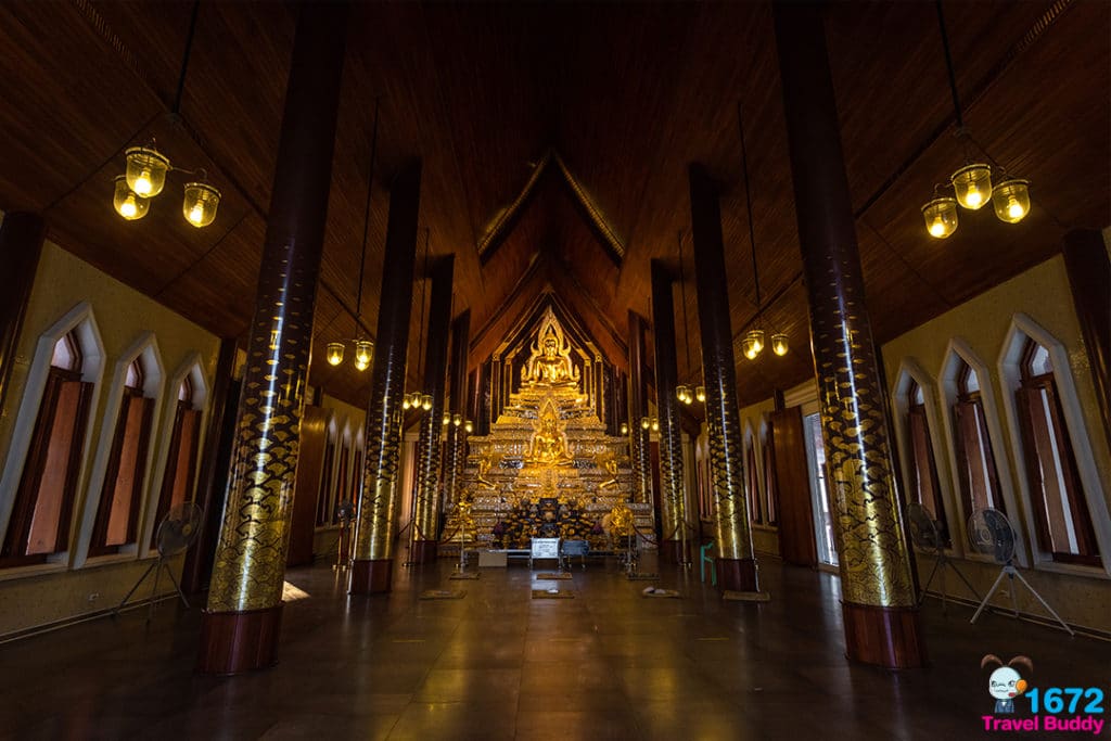 ภายนอกพระอุโบสถมีระเบียงคด ซึ่งประดิษฐานสมเด็จองค์ปฐมและพระพุทธเจ้า 28 พระองค์ ตลอดจนรูปหล่อพระพุทธรูปหน้าตัก 4 ศอกยาวตลอดแนวกำแพง สามารถเดินชมความงามพร้อมสักการะ หรือเดินทำสมาธิได้
