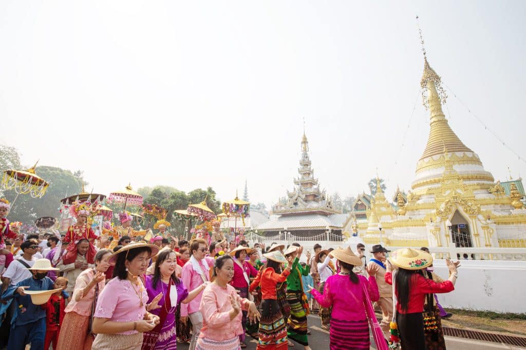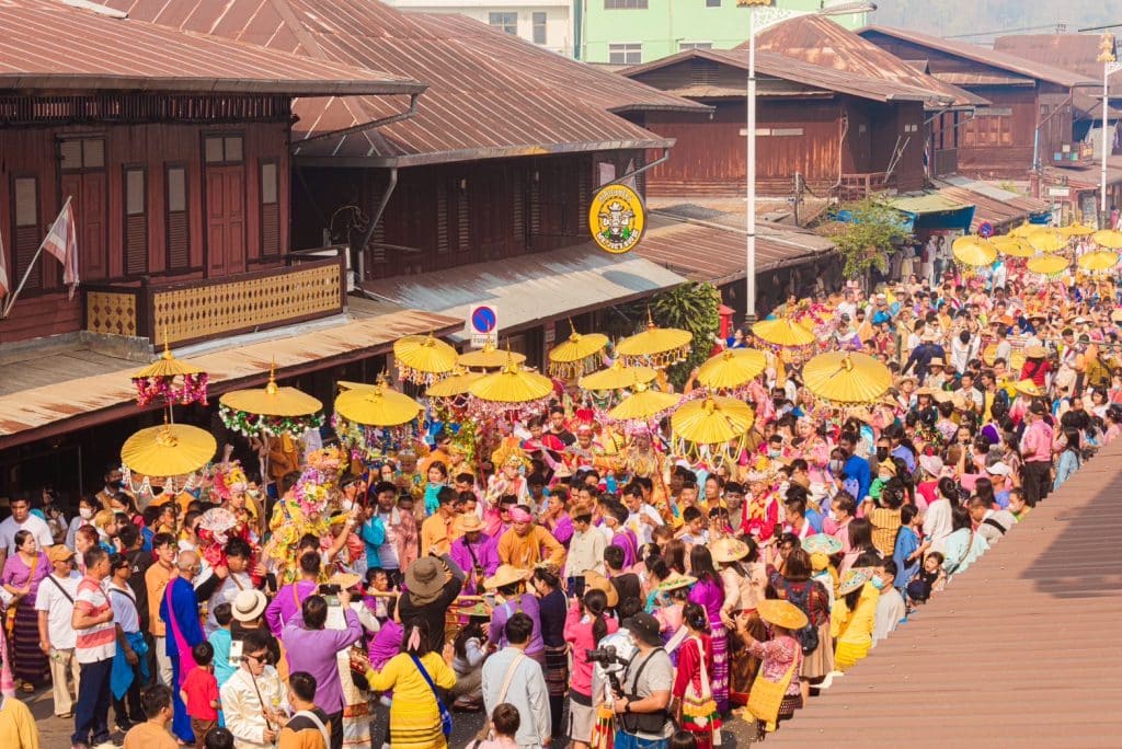 การบรรพชาสามเณรตามแบบฉบับของชาวไทยใหญ่ ซึ่งเชื่อกันว่าได้กุศลแรงกว่าการบวชพระ โดยเด็กที่เข้าพิธีบรรพชาจะเรียกว่า “ส่างลอง”