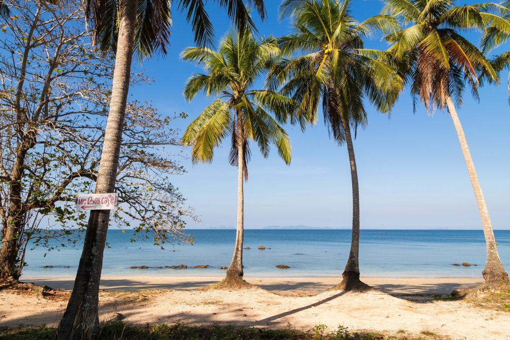 หาดช่องกิ่วในวันที่ฟ้าใส แดดดี น้ำทะเลจะสวยและใสมาก มุมต้นมะพร้าว 3 ต้น เรียงกัน เป็นมุมถ่ายรูปยอดนิยมของหาดช่องกิ่ว พิกัดอยู่ริมหาดช่วงที่ถนนตัดผ่านขนานไปกับชายหาด และหาดช่องกิ่วยังเป็นหาดที่ชมพระอาทิตย์ตกที่สวยอีกหาดของเกาะ