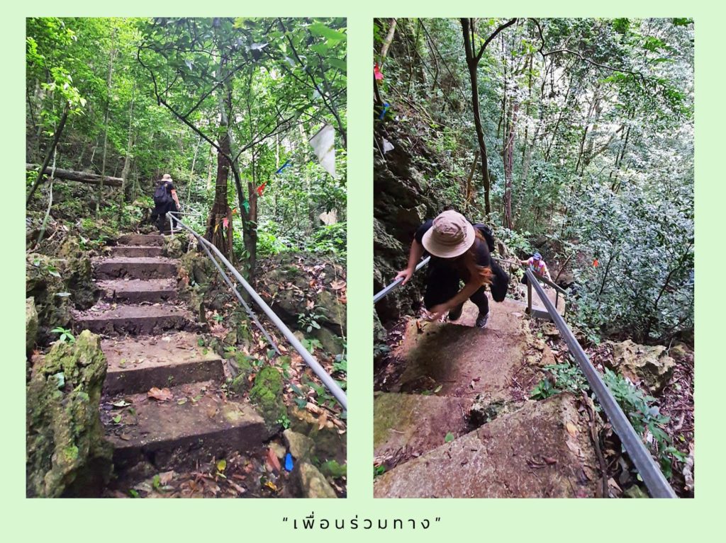 การขึ้นไปยังจุดชมวิวด้านบน นักท่องเที่ยวต้องเดินขึ้นบันได ซึ่งเป็นบันไดที่ชาวบ้านร่วมแรงร่วมใจสร้างขึ้นมา ใช้เวลาในการสร้างหลายปี เพราะสร้างเฉพาะวันพระเท่านั้น บางจุดบันไดชันเกือบ 90 องศา ดังนั้นต้องเดินอย่างระมัดระวัง และเตรียมร่างกายมาให้พร้อม เพราะงานนี้มีหอบแน่นอน