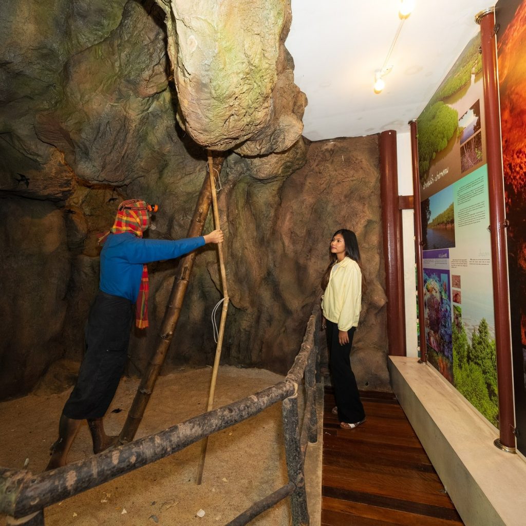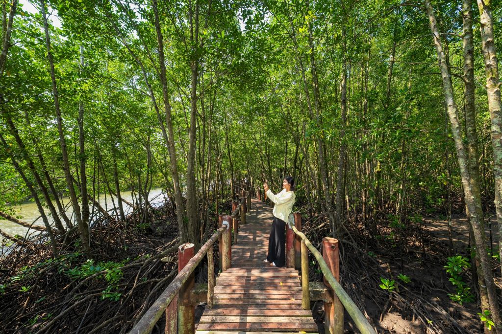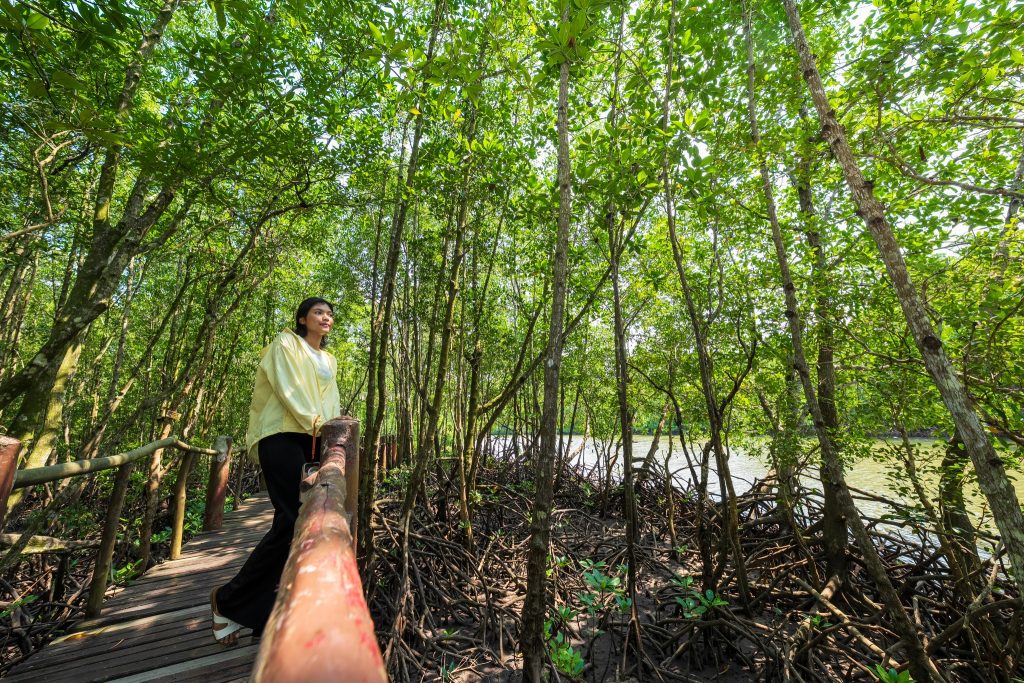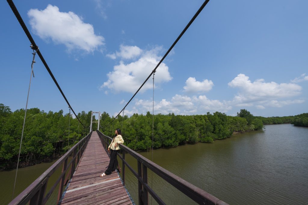 ทางเดินเป็นสะพานไม้ทอดยาวผ่านป่าชายเลนที่สมบูรณ์ เพื่อน ๆ จะได้พบกับพันธุ์ไม้ป่าชายเลนหลากหลายชนิด เช่น โกงกาง แสม ลำพู และอาจได้เห็นปู ปลาตีน หรือนกน้ำต่าง ๆ ที่อาศัยอยู่ในระบบนิเวศนี้ ความสำคัญของป่าชายเลนในการเป็นแหล่งอนุบาลสัตว์น้ำ ป้องกันการกัดเซาะชายฝั่ง และเป็นแหล่งดูดซับคาร์บอนไดออกไซด์ 🌳