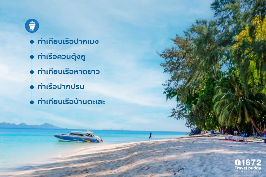 ใครที่อยากมาตามรอยบัดดี้ หรือสนใจมาเที่ยวชมความงามของ ‘ทะเลตรัง’ บัดดี้รวบรวมจุดบริการท่าเทียบเรือไว้ให้แล้ว สะดวกขึ้นเรือจากจุดไหน ปักหมุดตามไปได้เลยค่ะ และส่วนมากบริเวณท่าเทียบเรือแต่ละที่ จะมีจุดบริการเรือทัวร์ด้วย สำหรับใครที่สนใจไปแบบ One Day Trip สามารถเลือกทัวร์ที่สนใจกันได้ตามความต้องการ