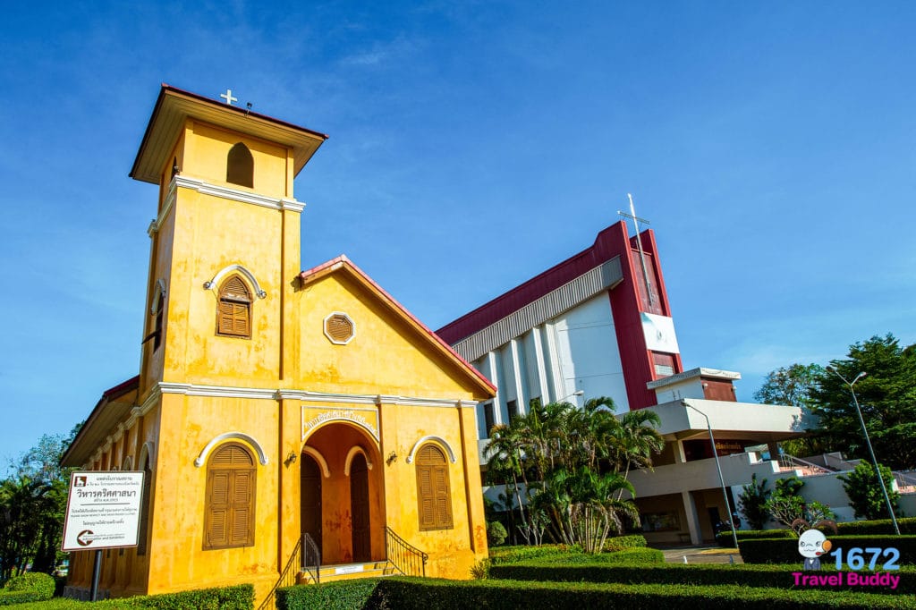 จากนั้นเลี้ยวขวาไปราว ๆ 550 เมตร จะพบวิหารคริสต์เก่าแก่ “คริสตจักรตรัง” หนึ่งในสถานที่ต้องห้ามพลาดเมื่อมาเที่ยวตรัง