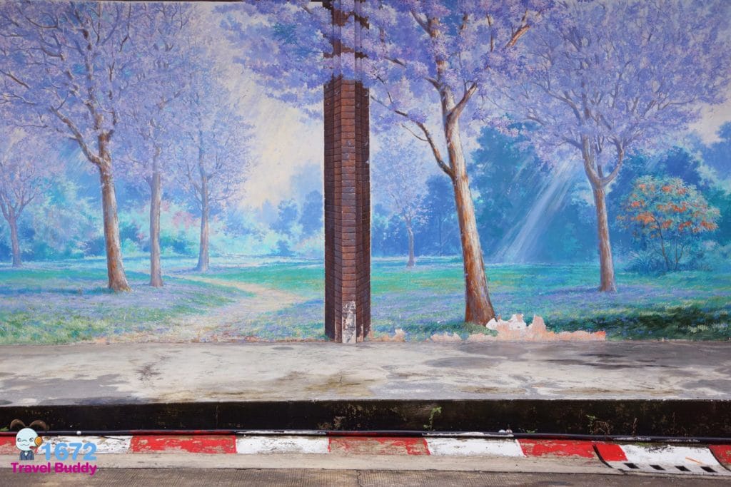 ที่ปากซอย ราชดำเนิน 1 มี ภาพเขียน “ต้นศรีตรัง” ต้นไม้มงคลประจำจังหวัดตรังที่มีดอกสีม่วงสดใส ยามเมื่อออกดอก ทั้งต้นจะเห็นเป็นสีม่วงอย่างในภาพเขียนที่เราเห็น