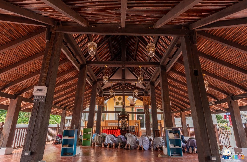 ไม่ไกลจากวัดทรายขาว มีมัสยิดเก่าแก่อายุกว่า 300 ปี ที่ผสมผสานสถาปัตยกรรมระหว่างไทยและมุสลิม เป็นมัสยิดไม้ที่สร้างขึ้นโดยไม่ใช้ตะปู ใช้เพียงไม้เป็นสลักในการยึดแต่ละส่วนเข้าด้วยกัน ออกมาเป็นรูปแบบศาลาการเปรียญ ไม่มีโดม แตกต่างจากมัสยิดที่พบเห็นกันทั่วไป ซึ่งมัสยิดแห่งนี้เป็นการออกแบบร่วมกันระหว่างพระครูศรีรัตนากร หรือพ่อท่านศรีแก้ว เจ้าอาวาสวัดทรายขาวในสมัยนั้น กับโต๊ะอิหม่าม เป็นการยืนยันถึงความสัมพันธ์อันดีระหว่างชาวบ้านทั้งสองศาสนาในชุมชน ซึ่งสะท้อนผ่านวัฒนธรรมการอยู่ร่วมกันมาอย่างยาวนาน