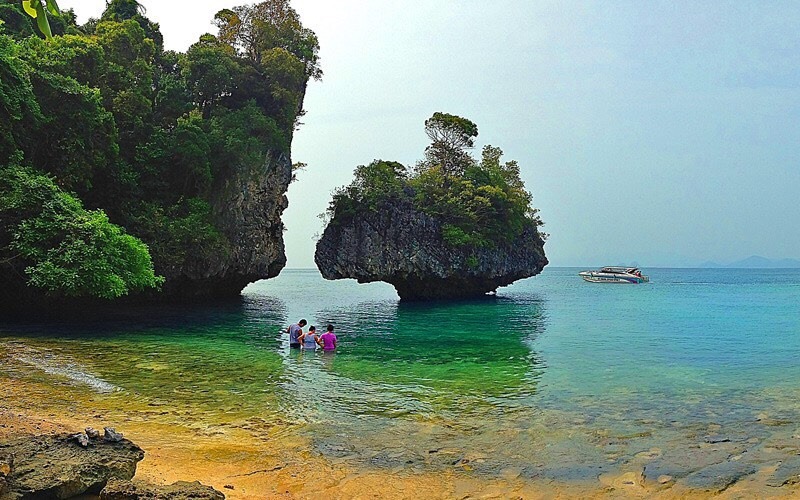 จากกระบี่ขึ้นเรือได้ที่ ท่าเรือบ้านท่าเลน ใช้เวลาประมาณ 45 นาที